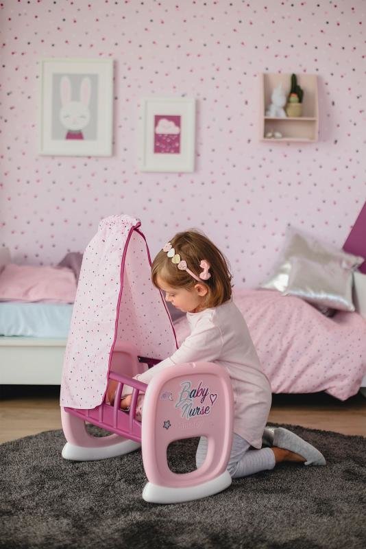Kolébka pro panenky z řady Baby Nurse s nebesy. Vhodné pro panenky do velikosti 42 cm. Panenka není součástí balení. Rozměry: 46,9 x 27,2 x 68,7 cm. Hmotnost: 1,36 przeczytaj całość