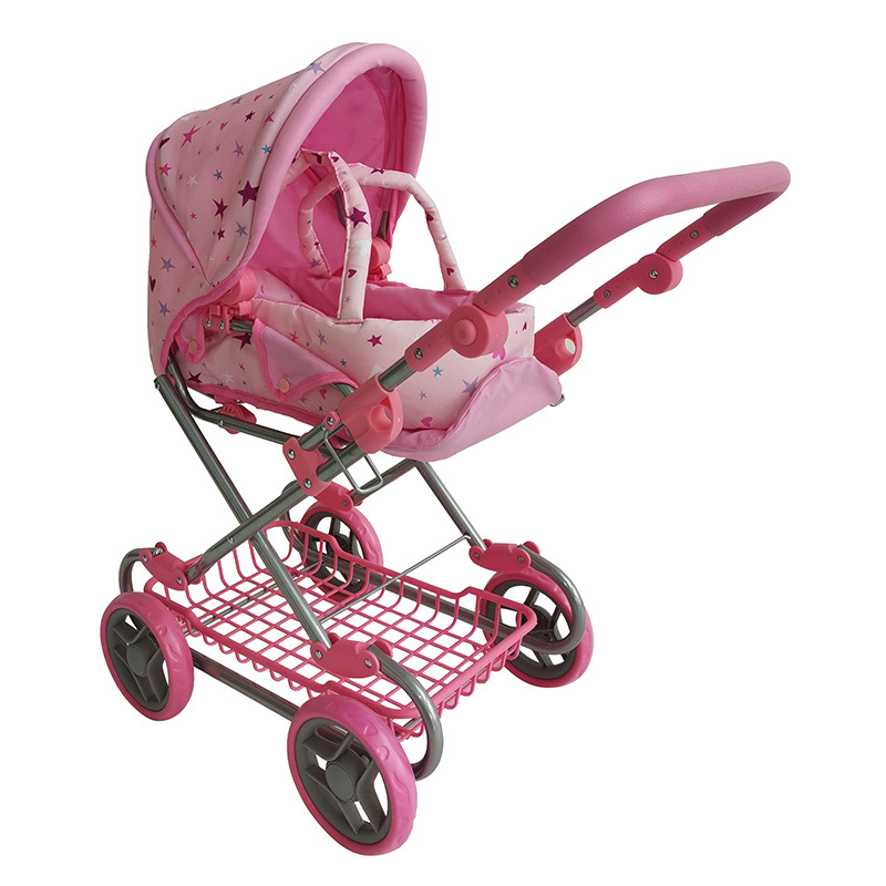 Dětský kočárek hluboký - růžový s hvězdami