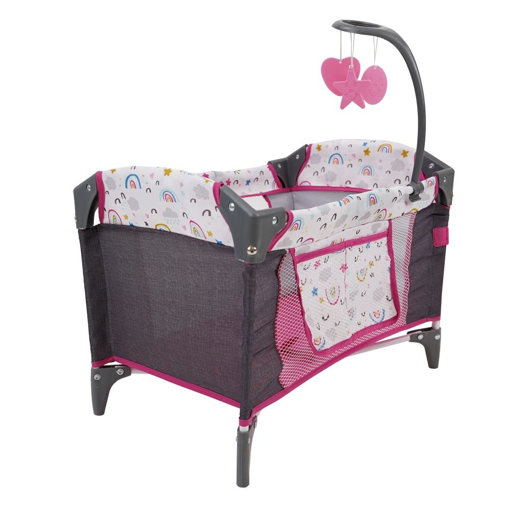 Cestovní postýlka pro panenky s kolotočem - Duha
