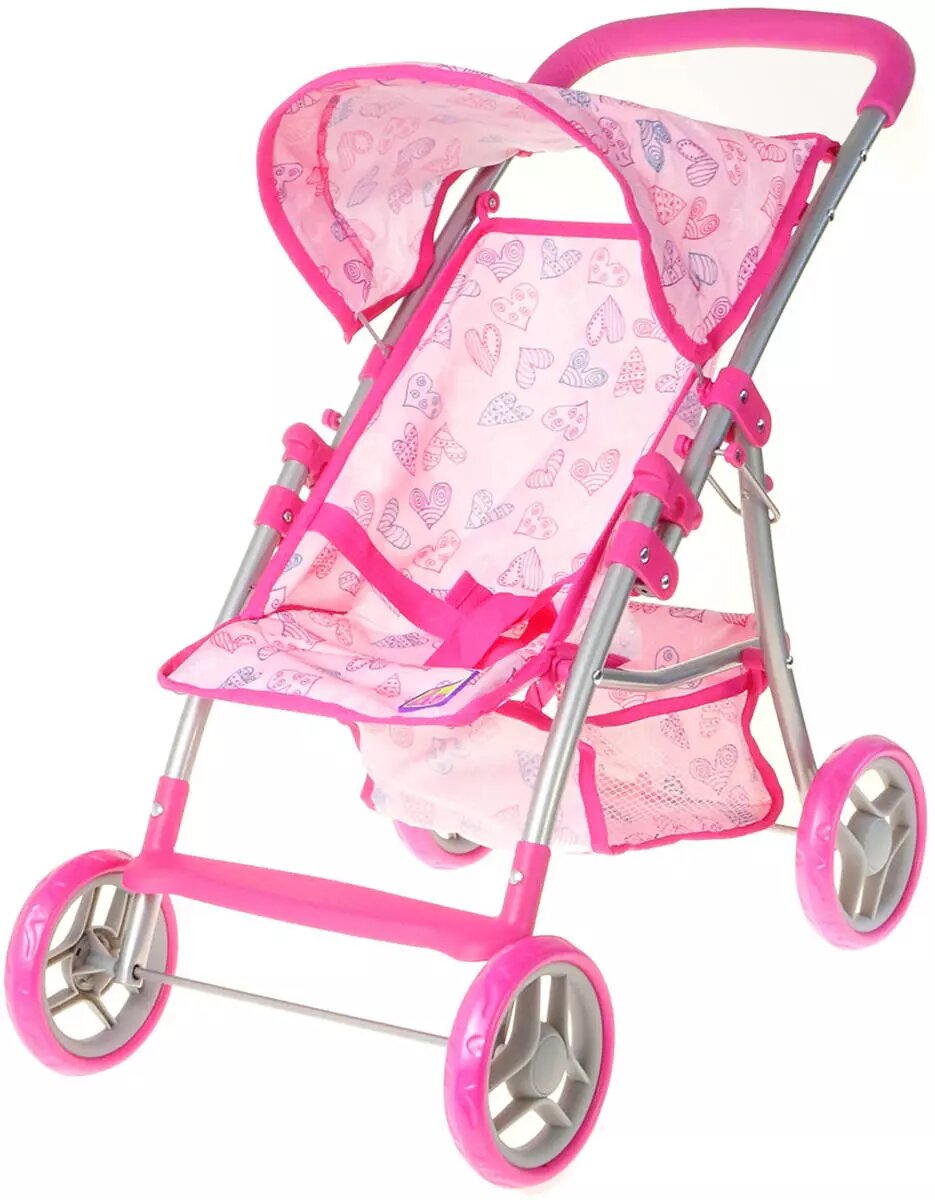 Růžový kočárek golfky pro panenky, se stříškou, košíkem a bezpečnostním pásem przeczytaj całość