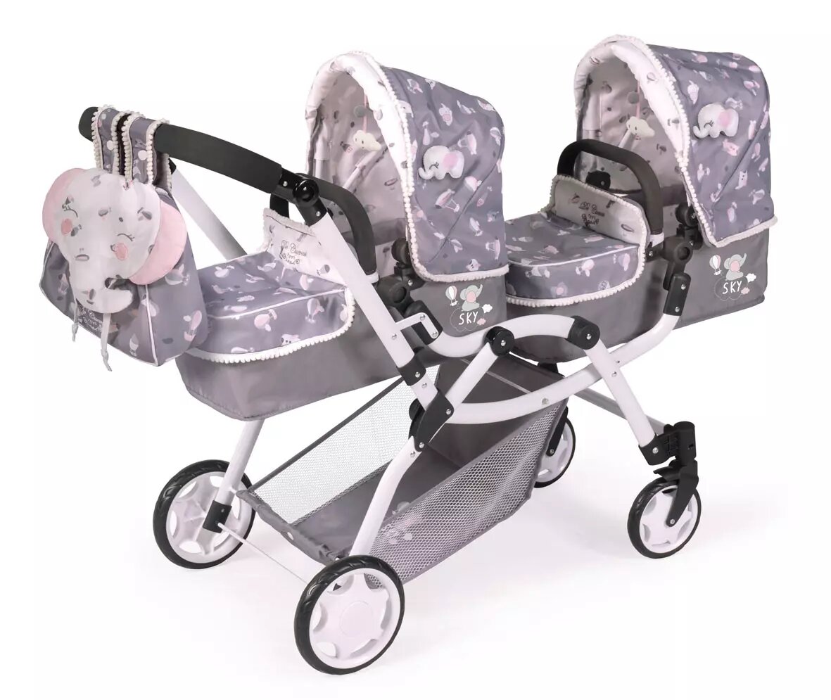 DeCuevas 80335 Skládací kočárek pro dvojčata panenky 3 v 1 TOP SKY 2020 – 81 cm je z inovované kolekce SKY 2020, která má letos ve svém znaku roztomilé slůně przeczytaj całość