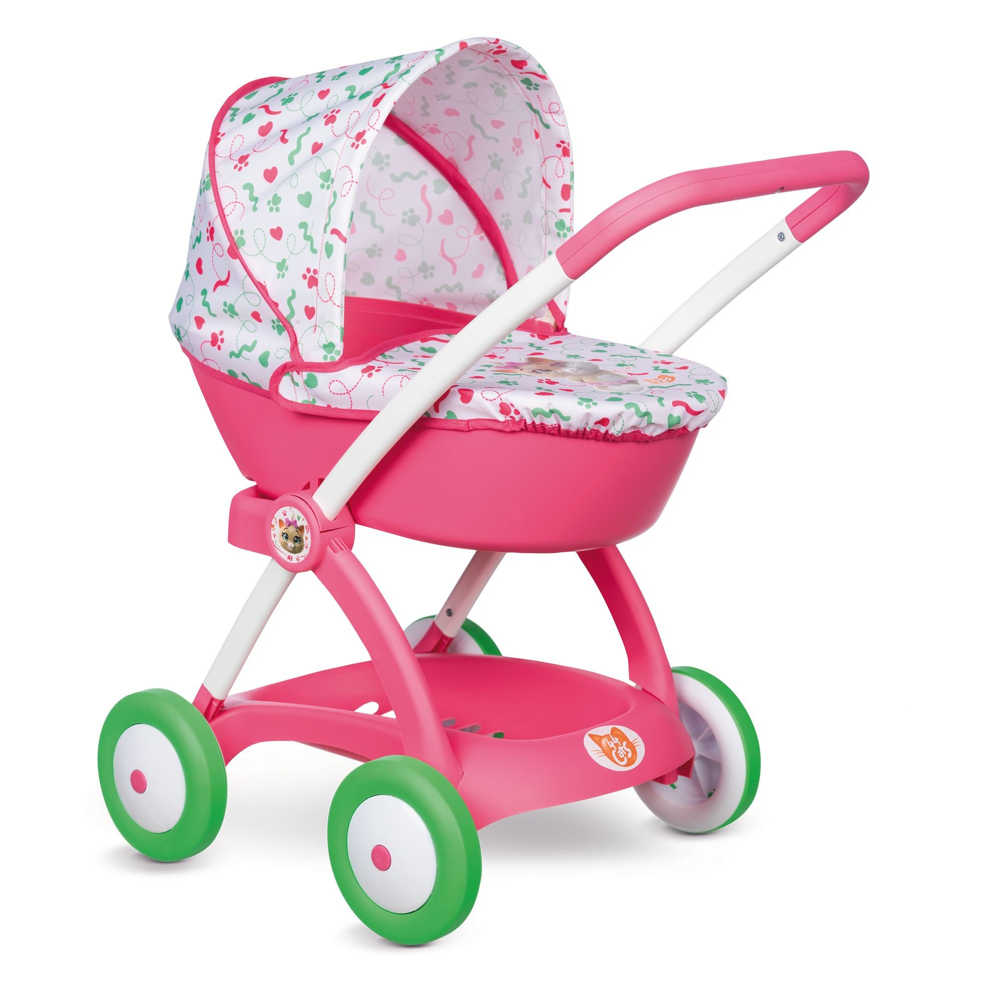 Hluboký kočárek pro panenky s motivy dětského seriálu 44Koček. Potah na lehátko, ochranná dečka i boudička jsou látkové. Rám kombinace kovu a plastu. Kolečka a košík z plastu. Vhodné pro panenky do velikosti 42 cm. Výška k rukojeti 58 cm. Rozměry: 57 x 58 x 38 cm. Hmotnost: 2,081. przeczytaj całość