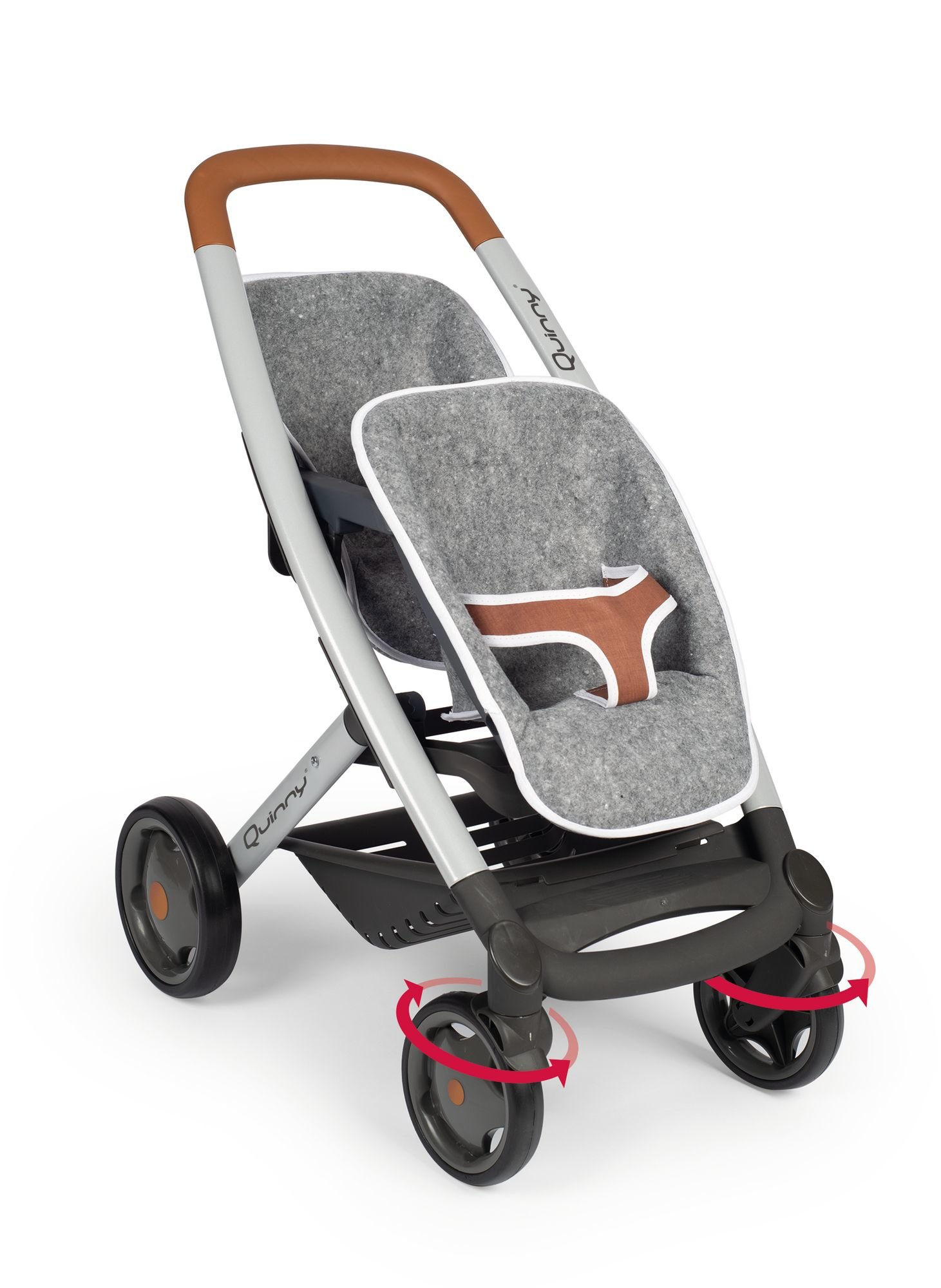 Sportovní kočárek Maxi-Cosi & Quinny pro panenky-dvojčata s šedým textilním potahem z moderního plstěného materiálu. Vhodné pro dvě panenky do velikosti 42 cm. Otočná přední kolečka. Kovový rám, tichá kolečka. Výška k ergonomické a lehce uchopitelné rukojeti je 65 cm. Rozměry: 38,5 x 65,5 x 52... przeczytaj całość