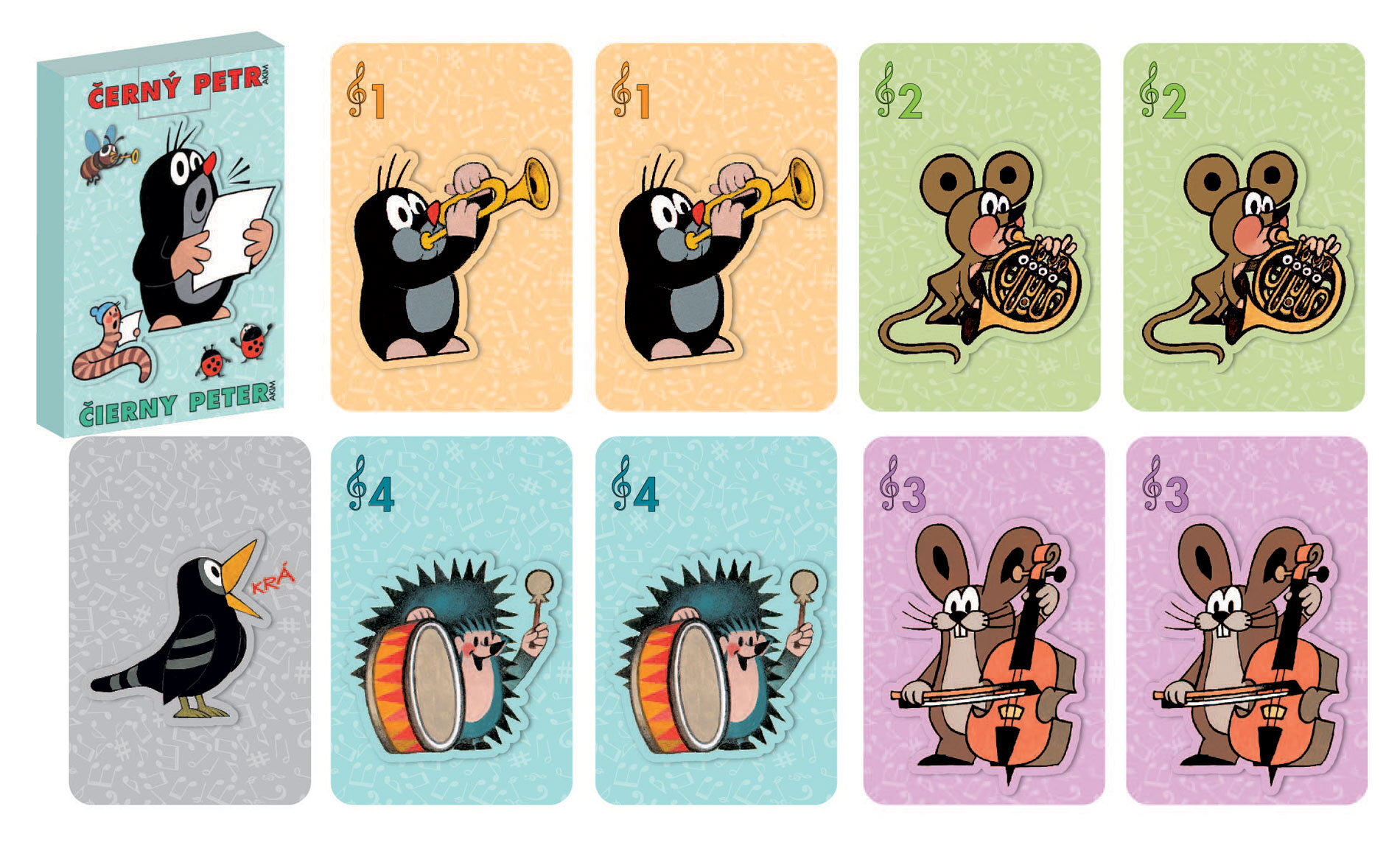 Dětské karty pro hru Černý Petr s obrázky Krtečka od ilustrátora Zdeňka Milera. Krabička obsahuje i podrobný návod a karty mají na rubové straně mírně zdrsnělý povrch pro lepší manipulaci s nimi. przeczytaj całość