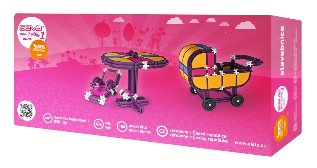 Stavebnice Seva pro dívky midi, ze které si můžete sestavit např.: kočárek, postýlku a mnoho dalšího nezbytného vybavení, každého pořádného domečku nejen pro Seváčky. Stavbenice obsahuje 180 dílků. Český výrobek. przeczytaj całość