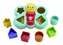 tvarech, kam pasují konkrétní kostičky. Děti mohou kostky vkládat,