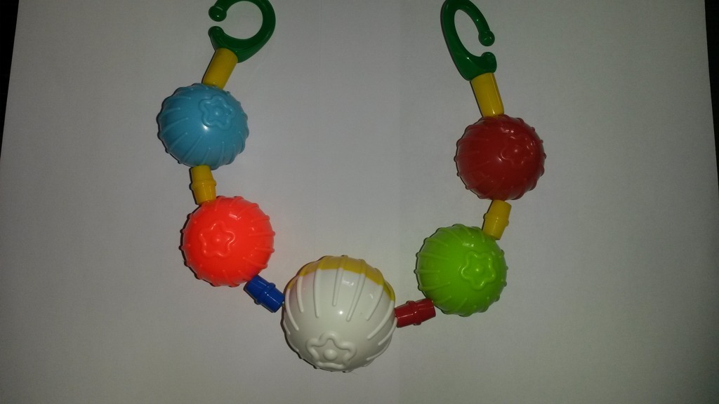 Chrastící zábrana na kočárek – dvě velké kuličky a tři malé. V různých barvách. Vyrobeno z kvalitního plastu, určeno pro nejmenší – vyrobeno v ČR. przeczytaj całość