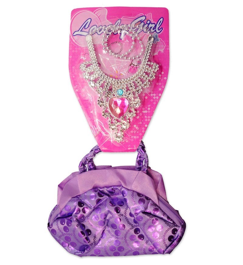 Dívčí set – náhrdelník. Dívčí set z kolekce bižuterie. Sada obsahuje kabelku v krásném fialovém provedení s metalickým potiskem a princeznin náhrdelník. przeczytaj całość