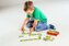 - Wspomaga drobną motorykę dzięki manipulacji drewnianymi kartami.