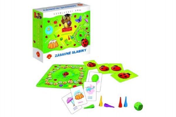 „Zabawne sylaby” to gra edukacyjna dla dzieci od 5 lat, która rozwija słuch fonemowy (umiejętność analizy i syntezy głoskowej wyrazów). Skupia się także na koordynacji wzrokowo-słuchowo-ruchowej oraz koncentracji słuchowej, które są bardzo ważne przy nauce czytania i pisania. Uczy także przestrzegania ustalonych zasad. W grę mogą grać nie tylko logopedzi, pedagodzy i terapeuci, ale także rodzice, którzy chcą poświęcić czas spędzony z dzieckiem zabawie o charakterze edukacyjnym. Zawartość opakowania: karty „biedronki” - 55 szt., karty z obrazkami - 55 szt., 1x plansza do gry, figurki - 5 szt., 1x kostka do gry, instrukcja w języku czeskim i słowackim.