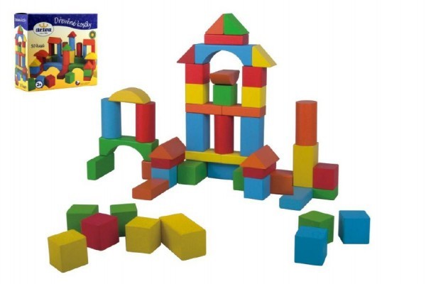 Kostky stavebnice dřevo 50 ks v krabici 20x19x8cm