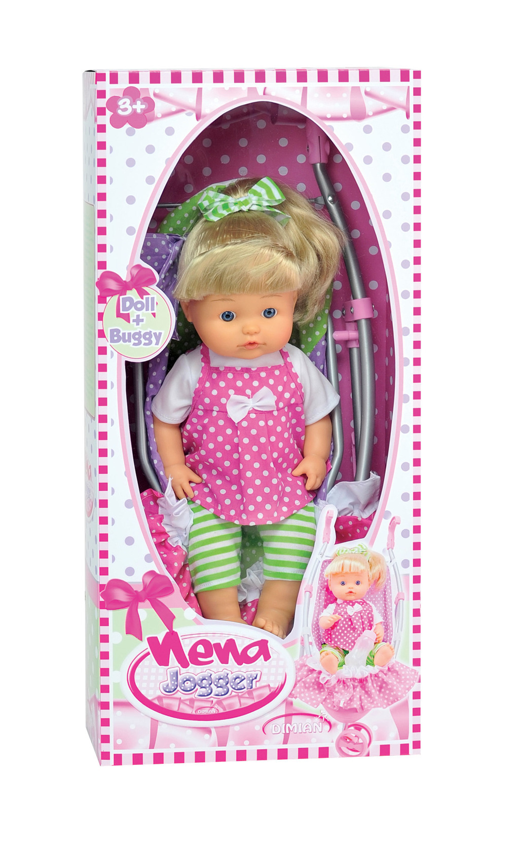 Krásná panenka Bambolina Nena v setu se sportovním tříkolovým kočárkem. Velikost panenky 42 cm. przeczytaj całość