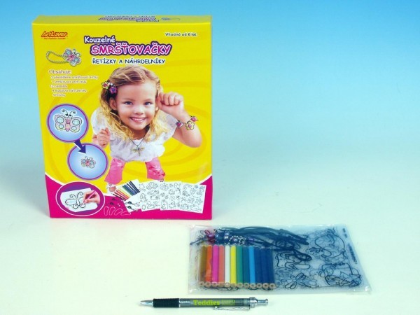 Vhodné pro děti od 6 let. Zažijte kouzelný efekt smršťování. Obrázky namalujete pastelkami, vytřihněte a vložte do předehřáté na 150 stupňů elektrické nebo horkovzdušné trouby na 2 minuty. Obrázek se začne zmenšovat a zpevňovat. Když zůstane beze změn, opatrně vyndejte z trouby. Sada obsahuje 3 archy s předtištěnými obrázky, 1 arch čistý, 12 pastelek, přes 300 korálků, gumičku.