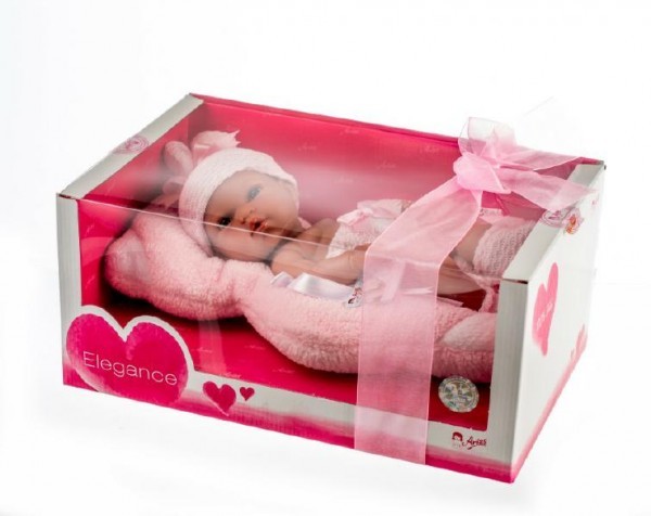 Panenka/miminko Arias vonící 33cm růžové pevné tělo v krabici