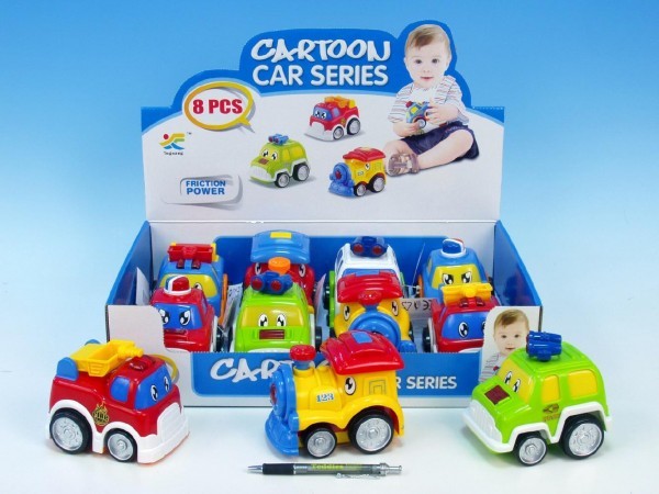 Vozidla plast veselá 13cm na setrvačník 4 druhy od 18 měsíců