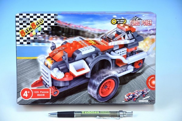 Stavebnice BanBao Auto závodní na zpětné natažení 105ks v krabičce 23x15x5cm