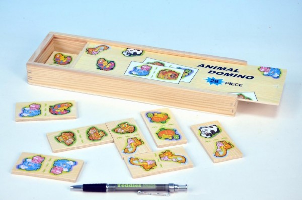 Domino se zvířátky dřevo 30x10x3,5cm 28ks v dřevěné krabičce od 10 měsíců