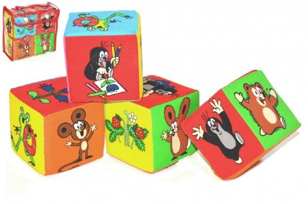 Kostka Krtek textilní 8x8cm 4ks v plastové tašce od 0 měsícu