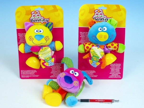Zvířátko natahovací hrající strojek plyš 18cm 2 druhy na kartě od 0 měsíců