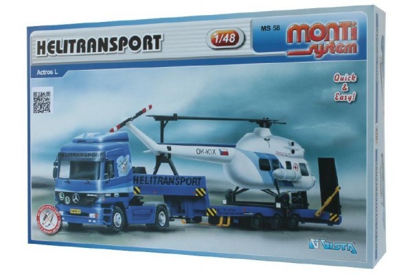 Stavebnice Monti 58 Actros L-MB Helitransport 1:48 v krabici 32x20,5x7,5cm