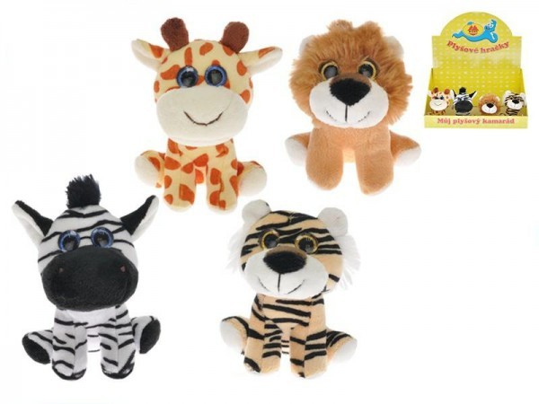 Zvířátko safari plyšové 12cm sedící velké oči asst 4 barvy 16ks v DBX 0m+