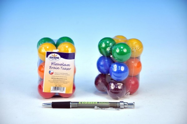 Hlavolam kuličky dřevo barevné v sáčku