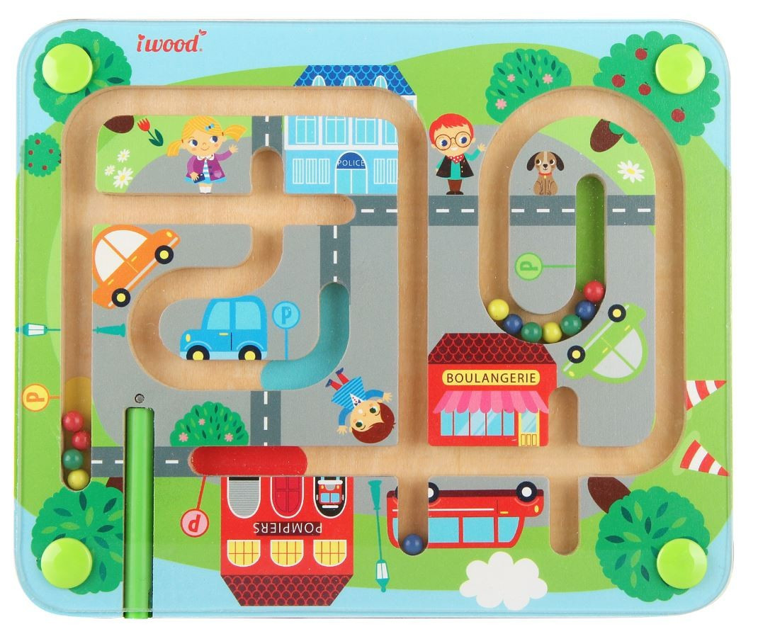 Labirynt magnetyczny Pojazdy w mieście Labirynt magnetyczny samochody Drewniany labirynt magnetyczny to innowacyjny sposób na ćwiczenia ruchów precyzyjnych dziecka. Za pomocą rysika magnetycznego zawartego w zestawie maluch może próbować przesuwać kuleczki, które znajdują się za przezroczystą...