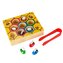 Zadaniem dziecka jest wyjmowanie kolorowych pszczółek za pomocą dołączonych pęset i następnie umieszczanie każdej pszczółki w otworze odpowiadającym jej kolorowi.