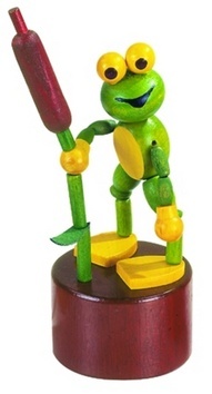Při mačkání středového dílu podstavce hračky se žabák pohybuje. Vhodné při procvičování motoriky rukou. Nevhodné pro děti do 3 let. Obsahuje malé části. Výrobek je zdravotně nezávadný. Rozměry výrobku 50 x 50 x 130 mm. przeczytaj całość