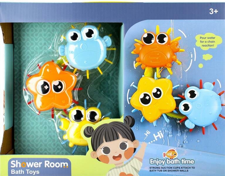 Zestaw dla dziecka zabawek do wody, w skład wchodzą:- 3 młynki,- 2 łyżki do wody,- 2 rybki.Młynki posiadają mocne przyssawki mocowane do ścian wanny lub prysznica, aby dobrze się trzymały. Wlej wodę na jeden młynek, a reszta zacznie się kręcić. Rybki posiadają sznurek - jak się go pociągnie, to...