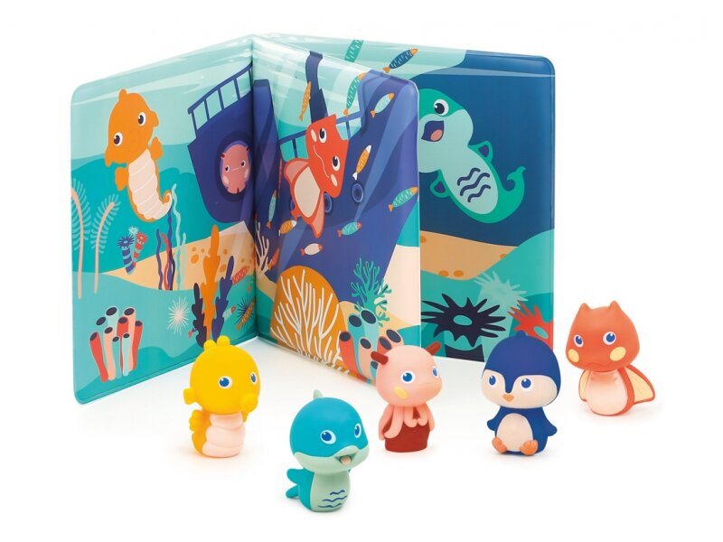 Książeczka do kąpieli ze zwierzątkami, które ożywają na palcach! Ta interaktywna książeczka kąpielowa z pięcioma pacynkami na palce przeniesie dzieci pod powierzchnię morza, gdzie czekają kolorowe ilustracje, radosne zwierzątka i nieograniczona przestrzeń dla wyobraźni. Idealna do wanny, basenu i poza wodą - zabawa nigdy nie jest złym pomysłem! Opowieści, które dzieci same odegrają: W zestawie 5 pacyn odpowiadających zwierzętom z książki Dzieci mogą wymyślać własne historie, odgrywać scenki i w ten sposób rozwijać zasób słownictwa Pacynki z miękkiego materiału doskonale pasują na dziecięce palce i wspierają drobną motorykę oraz koordynację Ilustracje zwierząt i podmorskiego świata pobudzają ciekawość i rozwój wyobraźni Zabawa w wodzie i poza nią: Materiał PEVA jest przyjemny, bezpieczny i odpowiedni do zabawy w wodzie Pacynki mogą przynieść ulgę także podczas ząbkowania Wszystko można łatwo opłukać i pozostawić do wyschnięcia po każdej kąpieli Wymiary książeczki: ok. 20 × 20 × 2 cm Wymiary pacyn: ok. 6 × 4 × 4 cm Skład: PEVA, PVC Pielęgnacja: opłukać czystą wodą i pozostawić do wyschnięcia Dla dzieci od 10 miesięcy.
