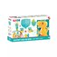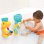 Ta modułowa zabawka do kąpieli przyciągnie każde dziecko uroczą dinozaurową rodzinką i kolorowym obiegiem wody. Dzięki przyssawkom łatwo ją przymocujesz do wanny lub płytek, a podczas zabawy dziecko może obserwować, jak woda płynie rurami, uruchamia prysznic lub wprawia w ruch młynek. Duży dinozaur z ciekawym lejkiem w kształcie skorupki jajka wprawia w ruch młynek, a mniejsze dinozaurowe młode może schować się w jajku i zabawnie pryskać wodą po naciśnięciu.