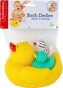 Rodzinę kaczek tworzy kaczuszka z dwoma kaczuszkami. Kaczuszka potrafi pływać po powierzchni z obiema kaczuszkami na grzbiecie, ale kaczuszki potrafią także samodzielnie wskakiwać do wody. Wymyślajcie razem z dzieckiem podczas kąpieli opowieści o tym, co rodzina kaczek przeżywa na wodzie i cieszcie się wspólnie przyjemnymi chwilami przed snem.