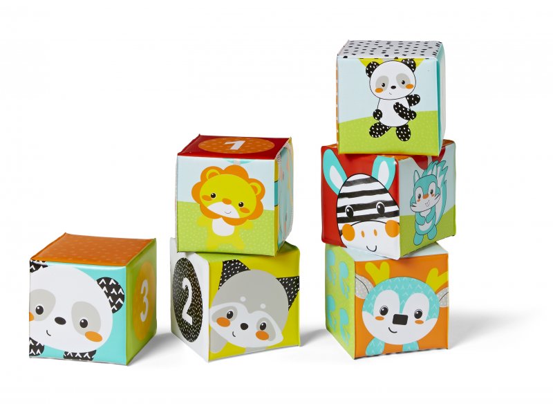 Zmywalne kostki z pięknymi ilustracjami zwierzątek w wyrazistych kontrastowych kolorach nadają się do użycia w wannie oraz jako pierwsze klocki do budowania wież i wspólnego opowiadania o zwierzątkach, kolorach i liczbach.Przeznaczone dla dzieci od urodzenia. przeczytaj całość