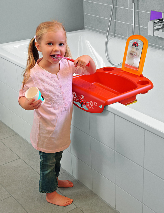 Umyvadlo pro děti k připevnění na rám vany. Součástí kelímek na zuby, zrcadlo, výpusť. Kvalitní plast. przeczytaj całość