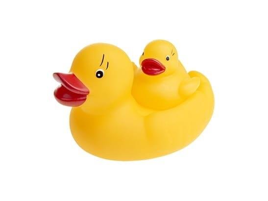 Po wyjęciu małej kaczuszki zabawka może posłużyć jako mydelniczka, z której dziecko chętnie sięga po mydło i uczy się samodzielnego mycia.