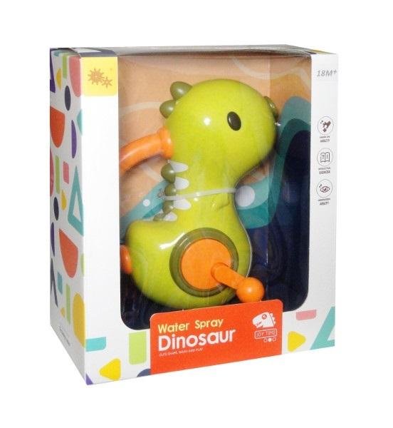Zabawka do kąpieli w kształcie dinozaura. Umieść zabawkę w wodzie, przekręć korbkę, a wtedy woda będzie wylewać się strumieniem z paszczy dinozaura. Zabawka dla dzieci od 18 miesiąca życia. Produkt zapakowany w kartonowe opakowanie z przezroczystym okienkiem. przeczytaj całość