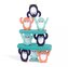 Zabawny zestaw zabawek do wody składa się z dwóch pływających platform i 8 uroczych pingwinków, które balansują na platformach. Pingwinki można układać na sobie na różne sposoby i tworzyć z nich piramidy. Po zamoczeniu pingwinki przyczepiają się do wanny. Można też ustawić je w rzędzie jedno za drugim i pozwolić im przewracać się jak domino. Zabawka nadaje się nie tylko do zabawy w wodzie, ale także na stole czy na podłodze.