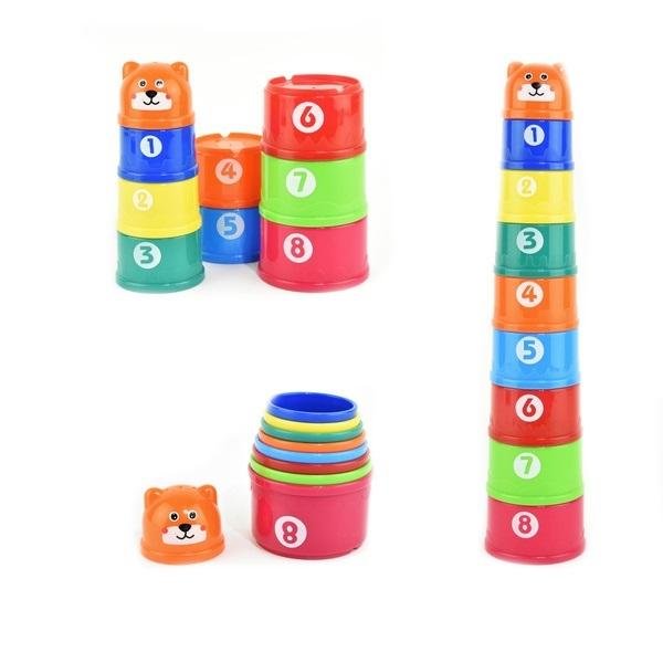Zestaw klocków do zabawy w układanie piramidy z cyferkami. Wspaniale sprawdzi się również jako kubeczki w wodzie, piasku. Można ustawiać kubeczki jedne na drugie. Klocki zapakowane są w poręczną przeźroczystą siateczkę , aby woda mogła swobodnie spływać. Każdy spód kubeczka ma specjalne otworki...