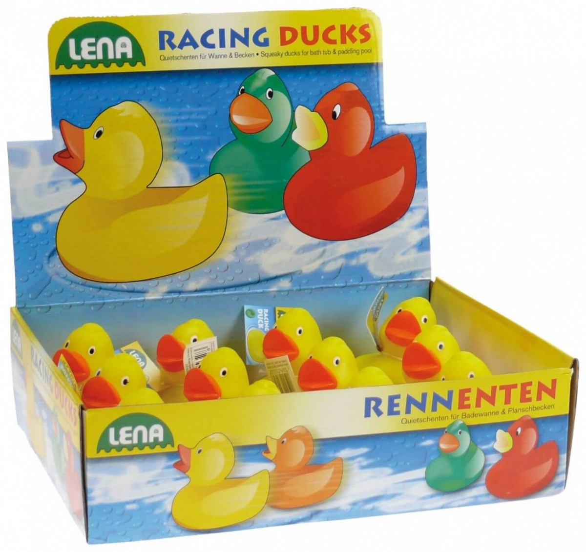 Kaczka do kąpieli LENA. Gdy tylko kaczka zostanie ściśnięta, wyda piskliwy dźwięk. Wysokość kaczek: 8 cm. Odpowiednia dla najmłodszych od 12 miesięcy. Zapakowana w ekspozytor sprzedażowy. Każdy produkt z załączonymi informacjami o produkcie. przeczytaj całość