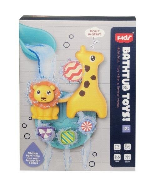Zabawka do kąpieli dla mniejszych dzieci. Za pomocą małych foremek znajdujących się w zestawie dziecko wprowadza wodę do zabawki, który następnie wypuszcza wodę. Następnie wypuszczana woda wprawia w ruch kolorowe kółka w dolnej części zabawki. Do zabawki dołączone są przyssawki. Zabawka rozwija...