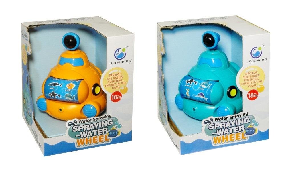 Zabawka łódź podwodna do kąpieli. Napełnij zabawkę wodą. Po podniesieniu pompki zabawka zacznie tryskać wodą, a kółko będzie sie kręcić. Na kółku znajdują się postacie zwierząt zyjących w wodzie. Zabawka występuje w kilku wersjach kolorystycznych, wybierany losowo. Cena dotyczy jednej sztuki. Produkt dla dzieci od 18 miesiąca życia. Produkt zapakowany w kartonowe opakowanie z okienkiem.