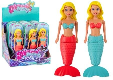 Syrenka Do Kąpieli Nakręcana Do Wody Pływająca Turkusowa Różowa Lalka MIX Nakręcana zabawka do wody Syrenka to urocza i interaktywna zabawka, która zapewni dzieciom mnóstwo radości podczas kąpieli. Laleczka ma długie, blond włosy, które dodają jej uroku. Jej turkusowy bądź różowy ogon jest pięknie zaprojektowany, przypominając klasyczne syrenki z bajek. Syrenka jest wyposażona w mechanizm nakręcany, który umożliwia jej pływanie w wodzie. Wystarczy nakręcić zabawkę, aby zaczęła się unosić i poruszać ogonem, co imituje naturalny ruch pływającej syrenki. Po nakręceniu, syrenka unosi się na wodzie i pływa, ruszając ogonem. Ten realistyczny ruch sprawia, że zabawa w wannie staje się jeszcze bardziej ekscytująca. Ogon syrenki jest nie tylko funkcjonalny, ale również estetyczny, z pięknym turkusowym bądź różowym kolorem, który przyciąga wzrok i dodaje magii zabawie. Syrenka to doskonały sposób na urozmaicenie kąpieli i zachęcenie dzieci do spędzania czasu w wodzie. Dzięki swojej funkcji pływania, laleczka staje się interaktywna, rozwijając zdolności manualne dziecka oraz jego wyobraźnię. To idealny prezent dla małych miłośników syrenek i zabaw w wodzie. Cena dotyczy jednej syrenki, opakowaniu zbiorczym znajduje się 12 sztuk. Proszę o wybranie koloru po zakupie - różowy bądź turkusowy, w przeciwnym razie kolor będzie wybierany losowo. Wymiary syrenki: 18 cm x 6 cm x 4 cm Posiada certyfikat CE, ponadto jest zgodny z normą EN71. Przeznaczony dla dzieci powyżej 3 roku życia.