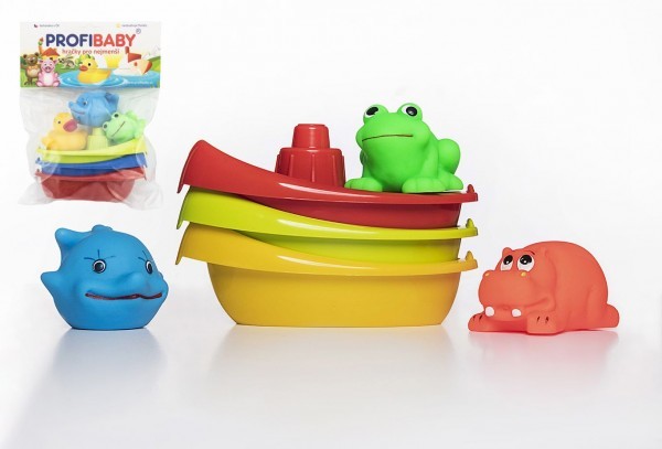 Trzy plastikowe łódki ze zwierzątkami. Różne kolory i kształty. Zabawka wyprodukowana w Czechach, bez ftalanów i posiada czeskie atesty. przeczytaj całość