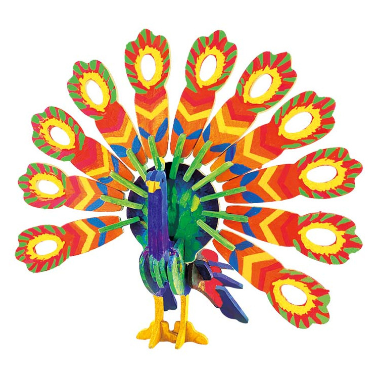 RoboTime Dřevěná skládačka Páv+ barvy a štětec