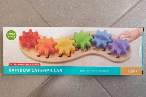 Ta plastikowa zabawka w kształcie gąsienicy składa się z kilku zębatych kół, które obracają się i napędzają nawzajem. Dzięki temu dziecko bezpośrednio obserwuje zasadę działania przekładni i rozumie podstawy współdziałania ruchomych elementów. Zabawka jest idealna dla dzieci od 1. roku życia i wspomaga rozwój motoryki, myślenia logicznego oraz ciekawości świata.