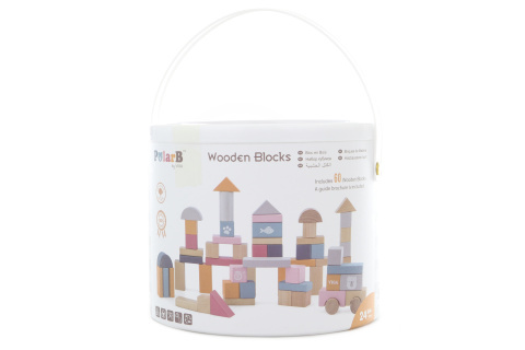 Dřevěná stavebnice v kyblíku. Obsahuje 60 dílků a obrázkovou brožuru s návody na stavění. Rozměry balení cca 18 x 18 x 14,5 cm. Velikost kostek 2,5 - 7,5 cm dle druhu. Věk 2+ przeczytaj całość