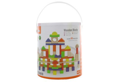 W praktycznym wiaderku znajdziesz 100 różnych drewnianych elementów o rozmiarach od 2,5 do 7,5 cm, które dzięki swojej różnorodności pozwalają budować najróżniejsze kształty i konstrukcje. W opakowaniu znajduje się również ilustrowana broszura z instrukcjami budowy, która pomoże dzieciom i rodzicom rozpocząć pierwsze projekty i stanowić będzie inspirację do dalszej twórczości.