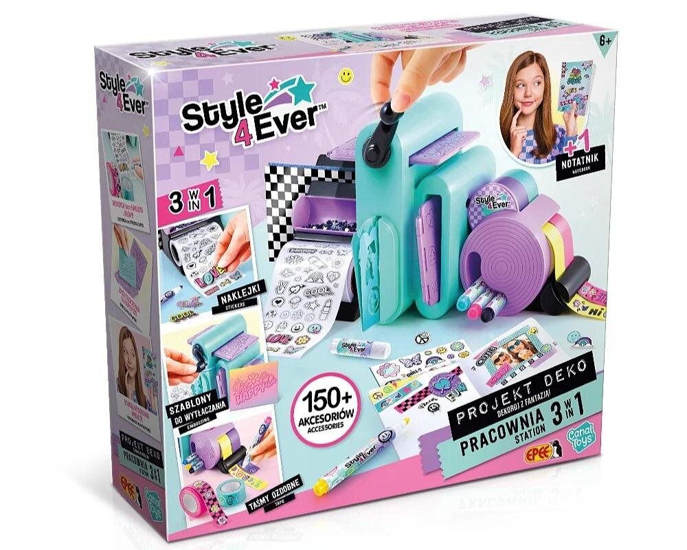 Projekt Deko zestaw pracownia 3w1 zawiera wszystko, czego potrzebujesz, by łatwo i wygodnie tworzyć własne kolorowe dekoracje. W opakowaniu jest ponad 150 różnych akcesoriów, w tym specjalna stacja do dekorowania - dzięki temu tworzenie staje się proste. Zestaw umożliwia nie tylko ozdabianie, ale także personalizację i kolorowanie różnych przedmiotów, takich jak dekoracje do pokoju, zeszyty, notatniki czy etui na telefon.
