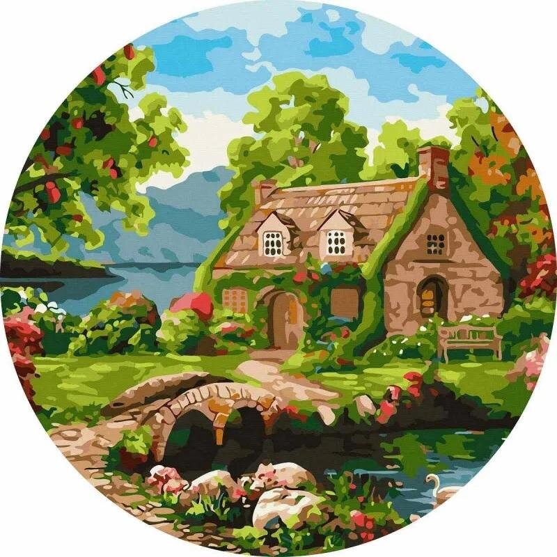 Malowanie po numerach okrągłe - Kwitnący dom 40cm